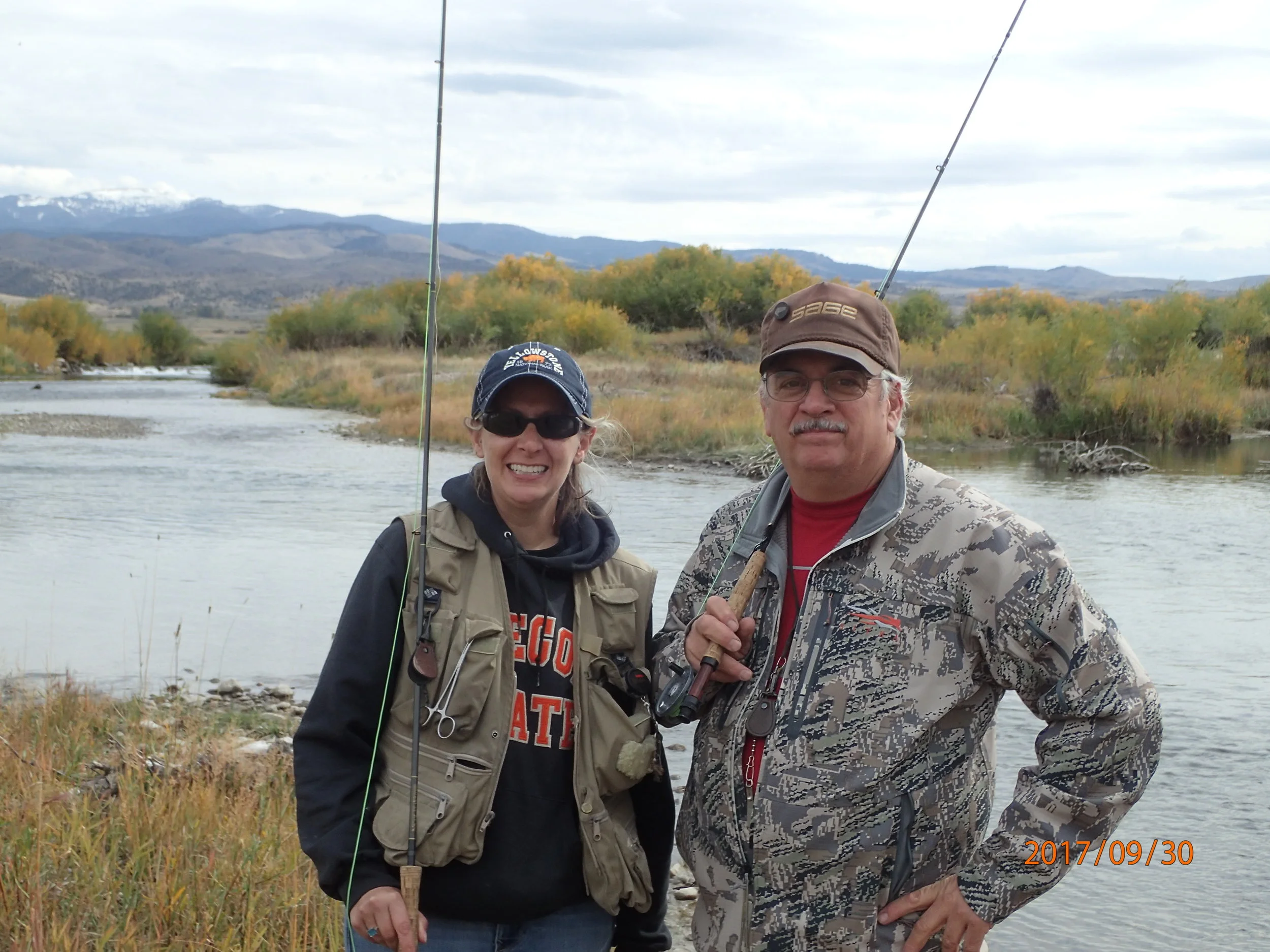 Julie and her father, the office manager, fly fishing in the Ruby Valley